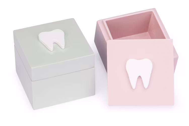 Jättefina tandaskar från leklyckan i milda färger som fungerar till baby och till skolbarnet som tappar sina första tänder och vill förvara dem ihop i en fin ta