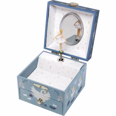 Vrid på veven och se magin ta form! Trousseliers utdragbara smyckeskrin med en ballerina som dansar till Svansjön. Perfekt för barnrummet eller dopgåva.