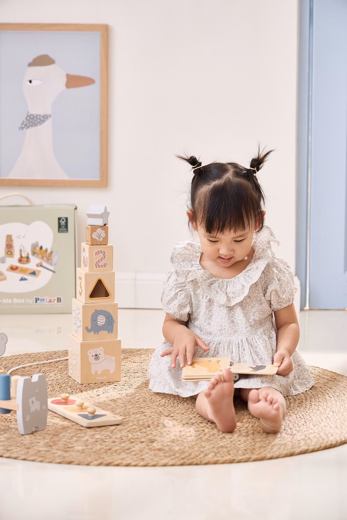 Denna fina babyboxen från Viga innehåller massor av roliga leksaker för barn 12-18mån! Leksakerna är noggrant utvalda för att utveckla barnets finmotoriska färdigheter och koordinationsförmåga.