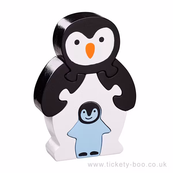 Charmigt "Pusseldjur Pingvin med unge"-pussel för barn. Främjar motoriska färdigheter och kognitiv utveckling. Från 10 månader.
