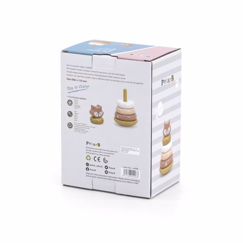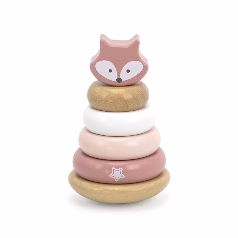 Vigas pedagogiska pyramidleksak är en tidlös klassiker som är perfekt för de allra minsta och som kommer att fylla barnens lek med glädje, intresse och kreativitet. Den pastellfärgade uppsättningen innehåller 5 klossar i olika storlekar samt ett huvud i form av en söt räv. Särskilt lämplig för små barn som precis har börjat bygga torn av klossar, genom att leka med denna tränar de hand-öga-koordination, utvecklar logiskt tänkande och lär sig att känna igen olika färger.