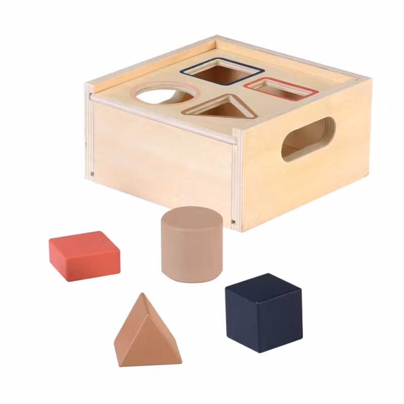 En klassiker. Ta bort alla träblock från lådan och försök att sätta in dem igen genom de matchande öppningarna.