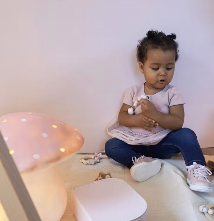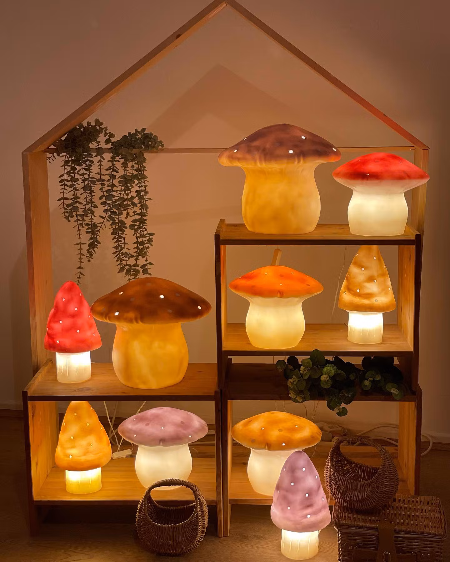 Med denna nattlampa öppnar sig en hel drömvärld! Spotlights och svampen ger ett mycket mjukt och mysigt ljus och hjälper barn att somna utan krångel.