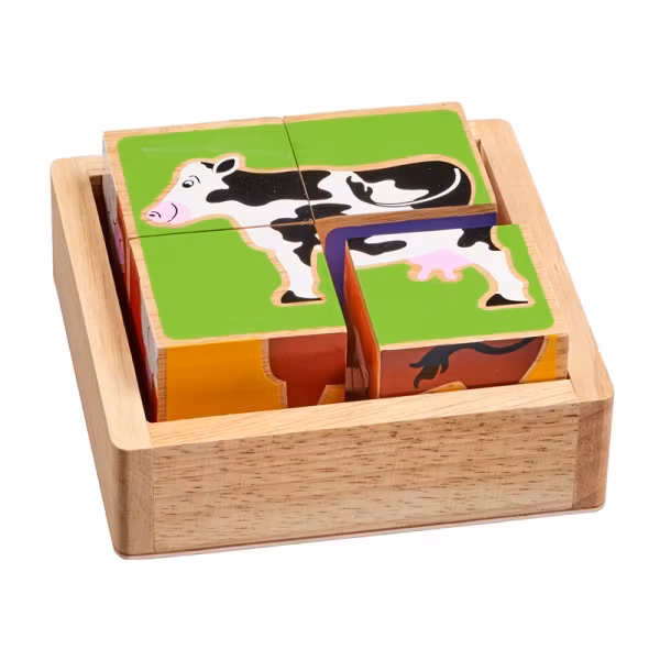 Bygg olika djur med detta finurliga klosspussel bondgårdsdjur från fina Lanka Kade. Gummiträ och FairTrade Från 18 månader, 133x133x60 mm