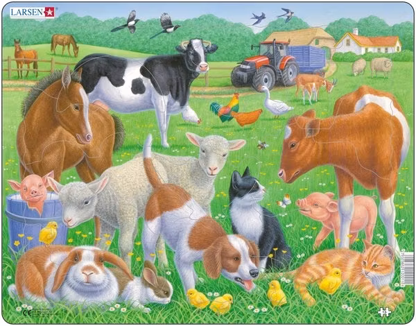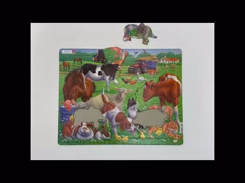 Detta fina pussel från Larsen pussel passar perfekt för den lilla djurälskaren! När pusslet läggs syns olika bondgårdsdjur.