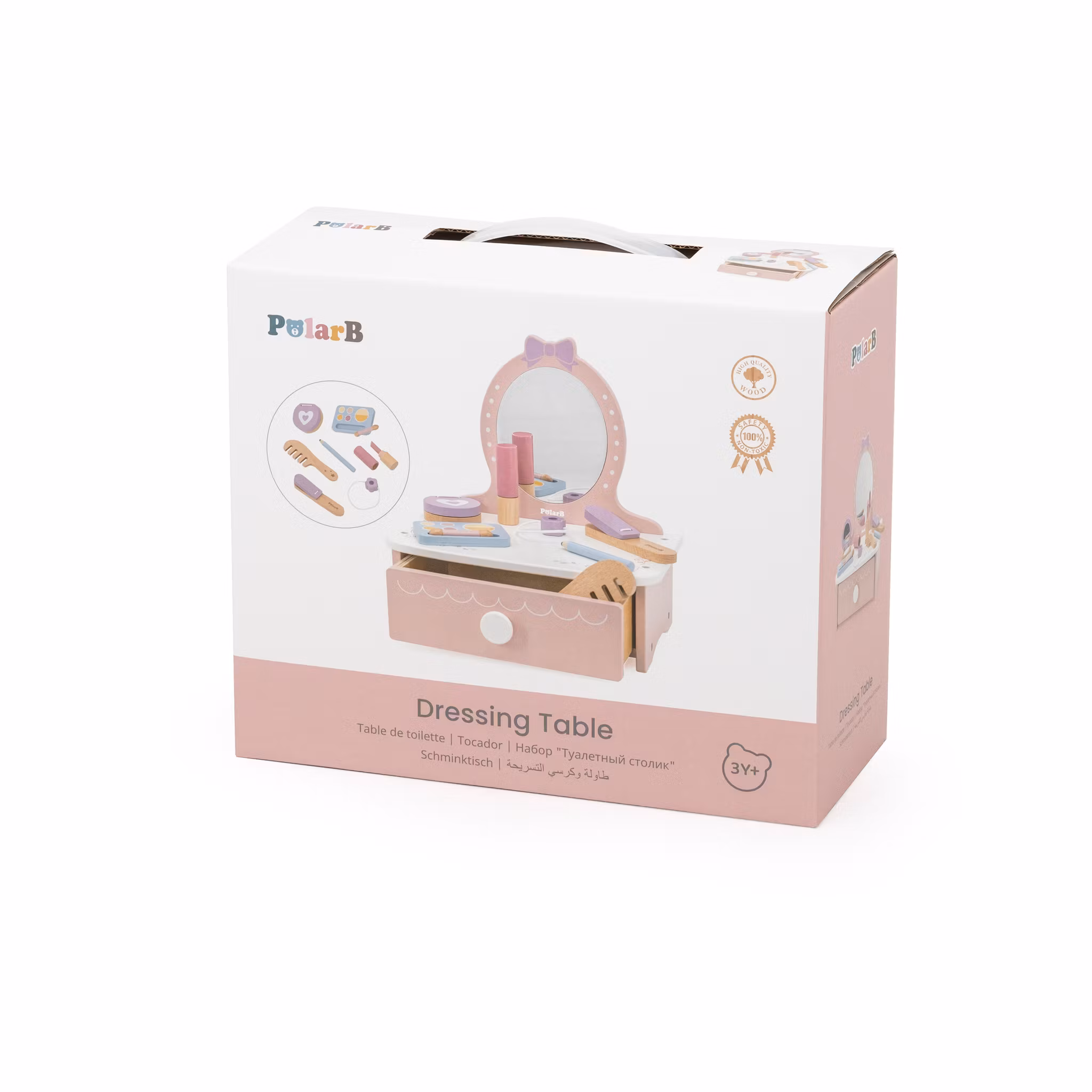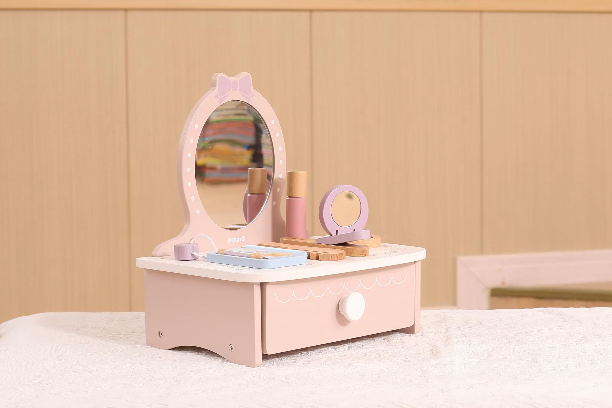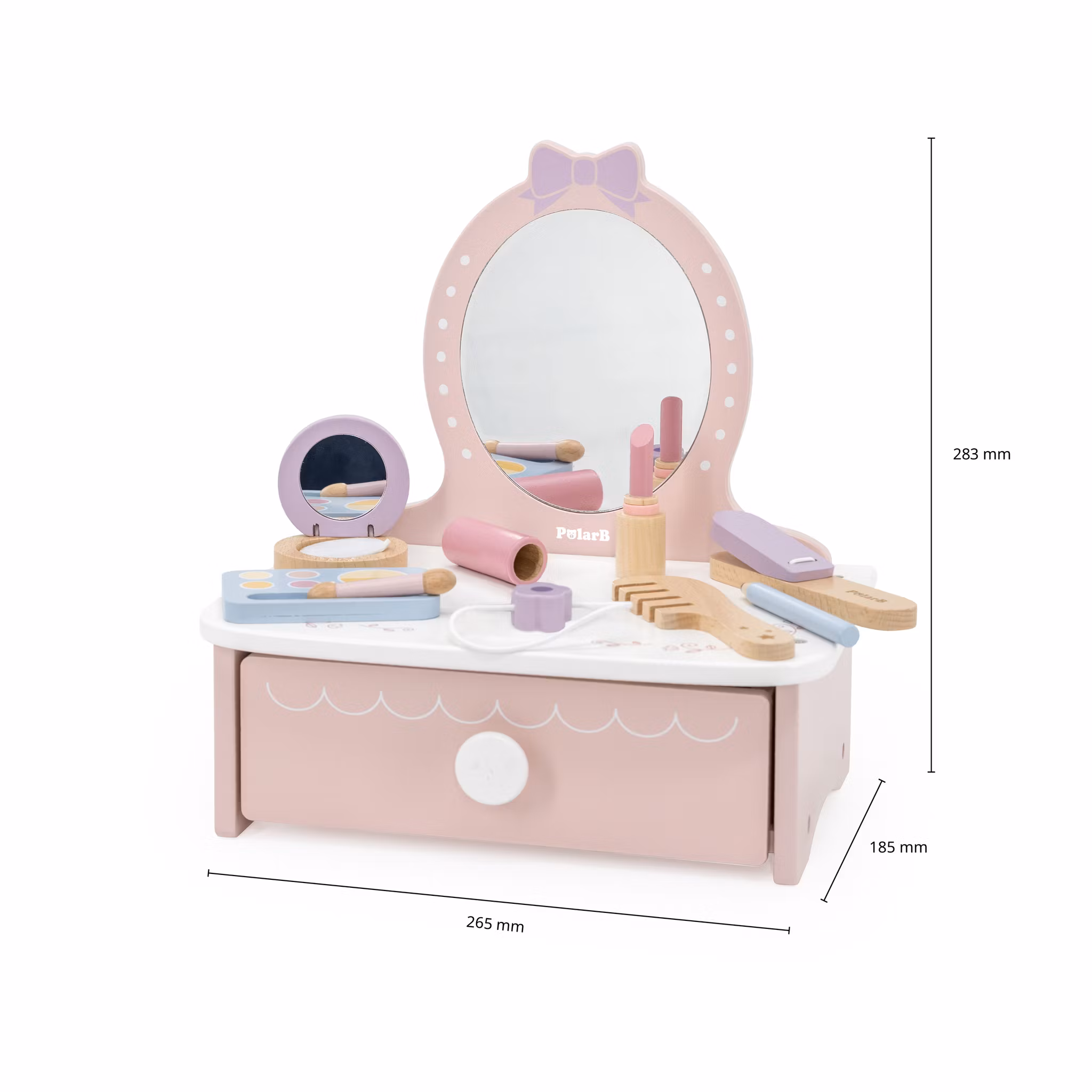 En jättegullig spegelbyrå med massa tillbehör. Fantastik present till en liten tjej eller kille på 3 år +8 tillbehörJättekul poppis leksak, kul rollspelsleksak