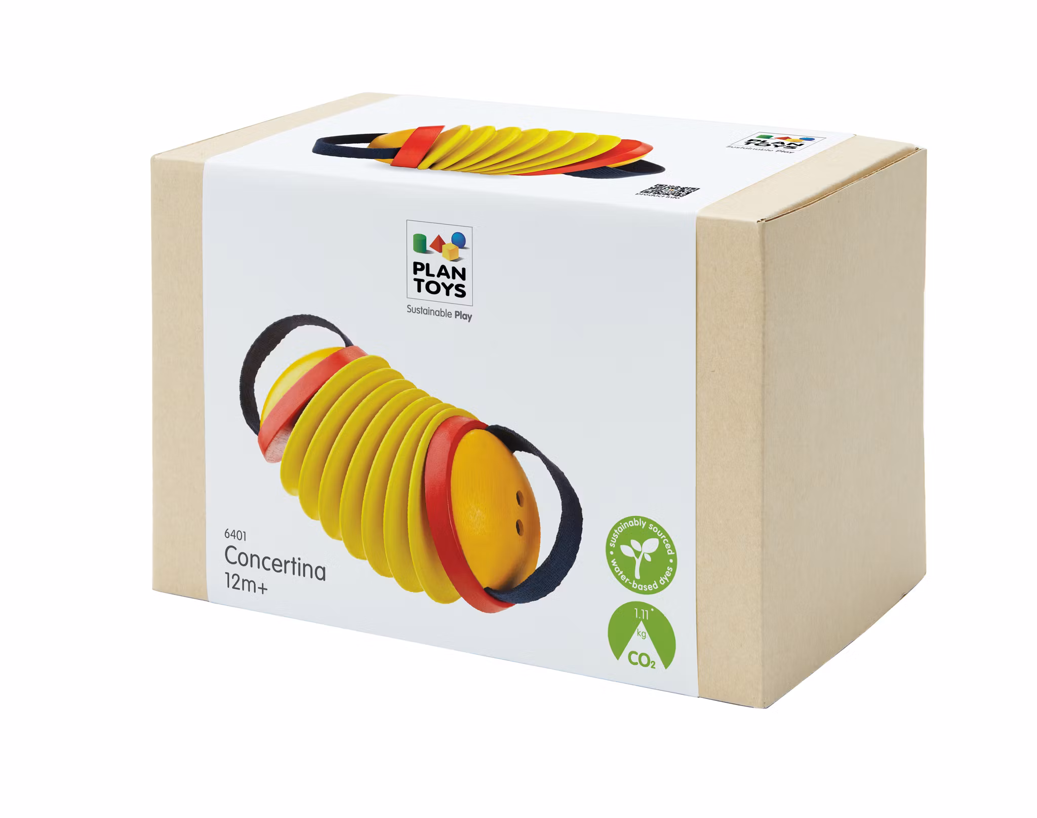 Concertina - Dragspel. Bälg av naturgummi.19m+, 10x10x10 cm. 100% eko från PlanToys