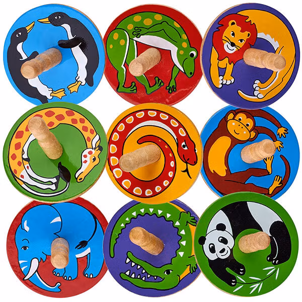 Härliga träsnurror i djurmotiv av Lanka Kade.
