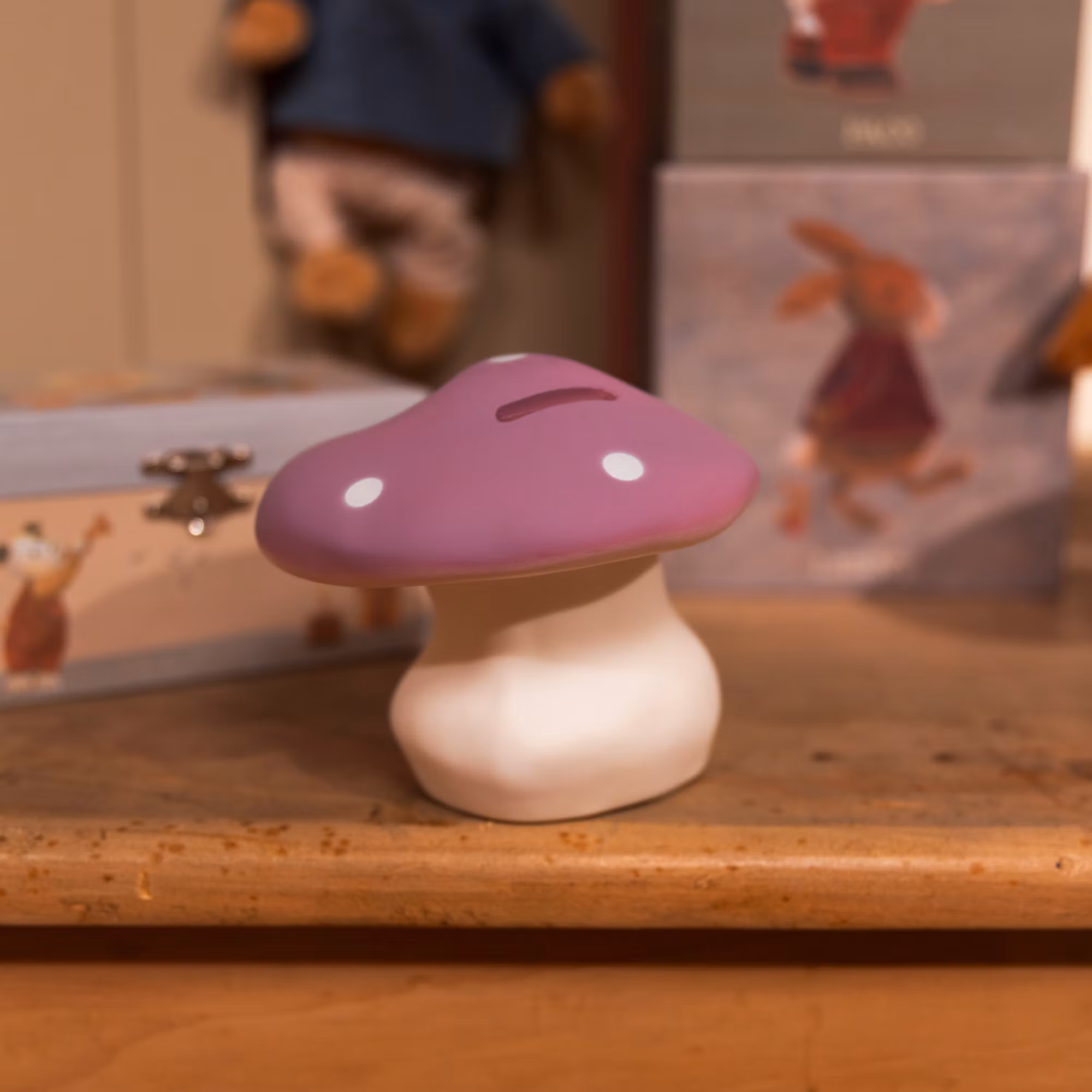 Denna söta lila svampformade sparbössa från Egmont toys blir en fin detalj i barnrummet.