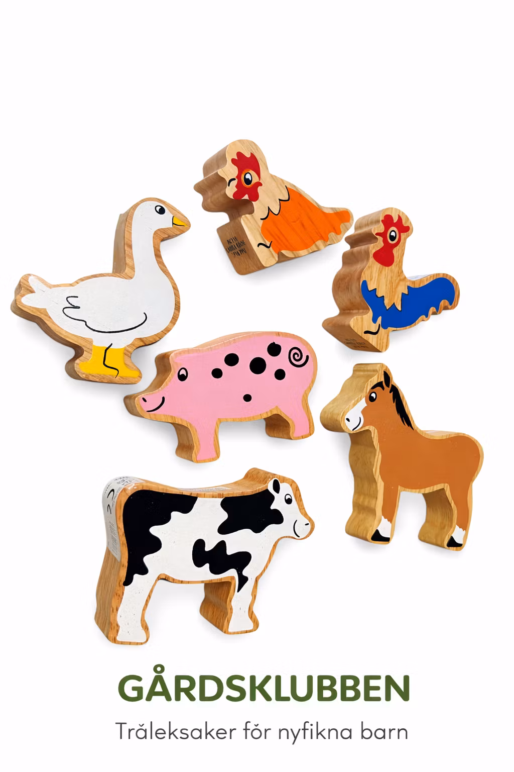 Innehåller tupp, höna, gås, griskulting, kalv och föl!