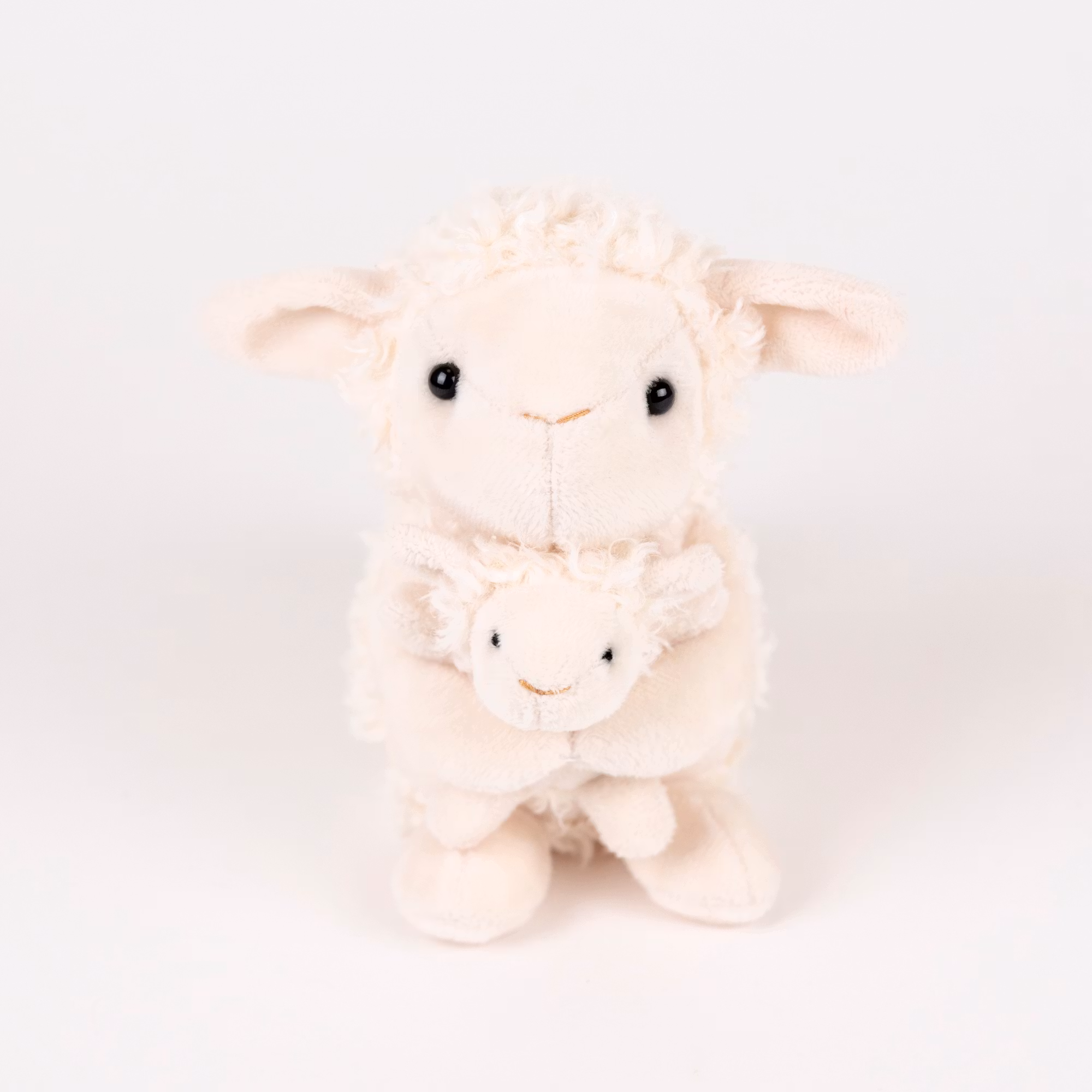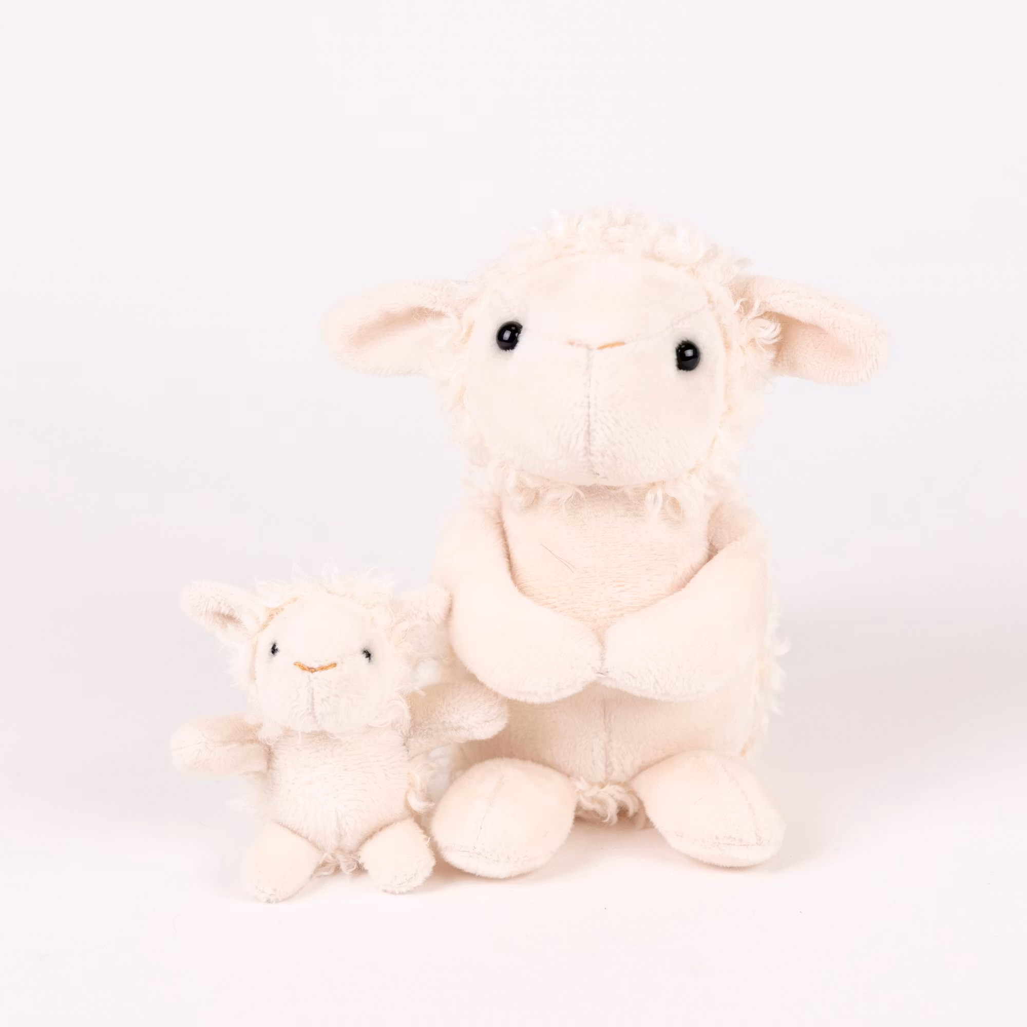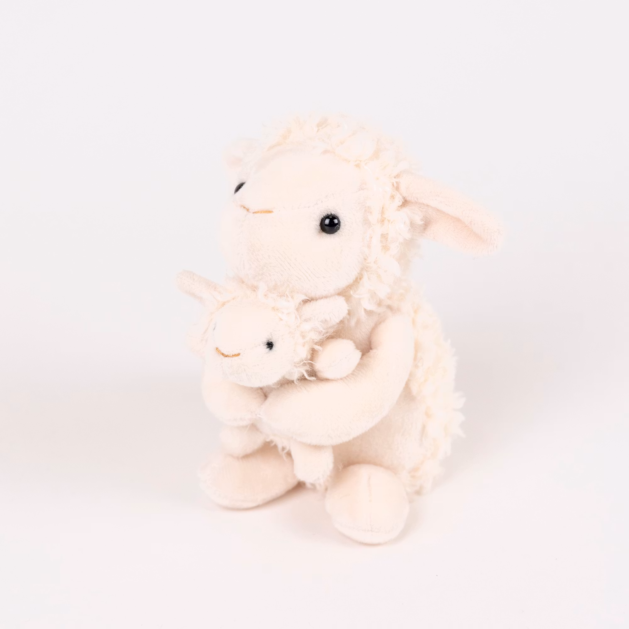 Möt detta milda lamm och hennes lilla unge, en öm duo gjord för att inspirera till värme och tillgivenhet. Med sina mjuka plyschiga texturer och kärleksfulla omfamningar inbjuder de till omhändertagande lek och tysta kramar. En tröstande följeslagare som hyllar närhet, omsorg och lugna stunder tillsammans.