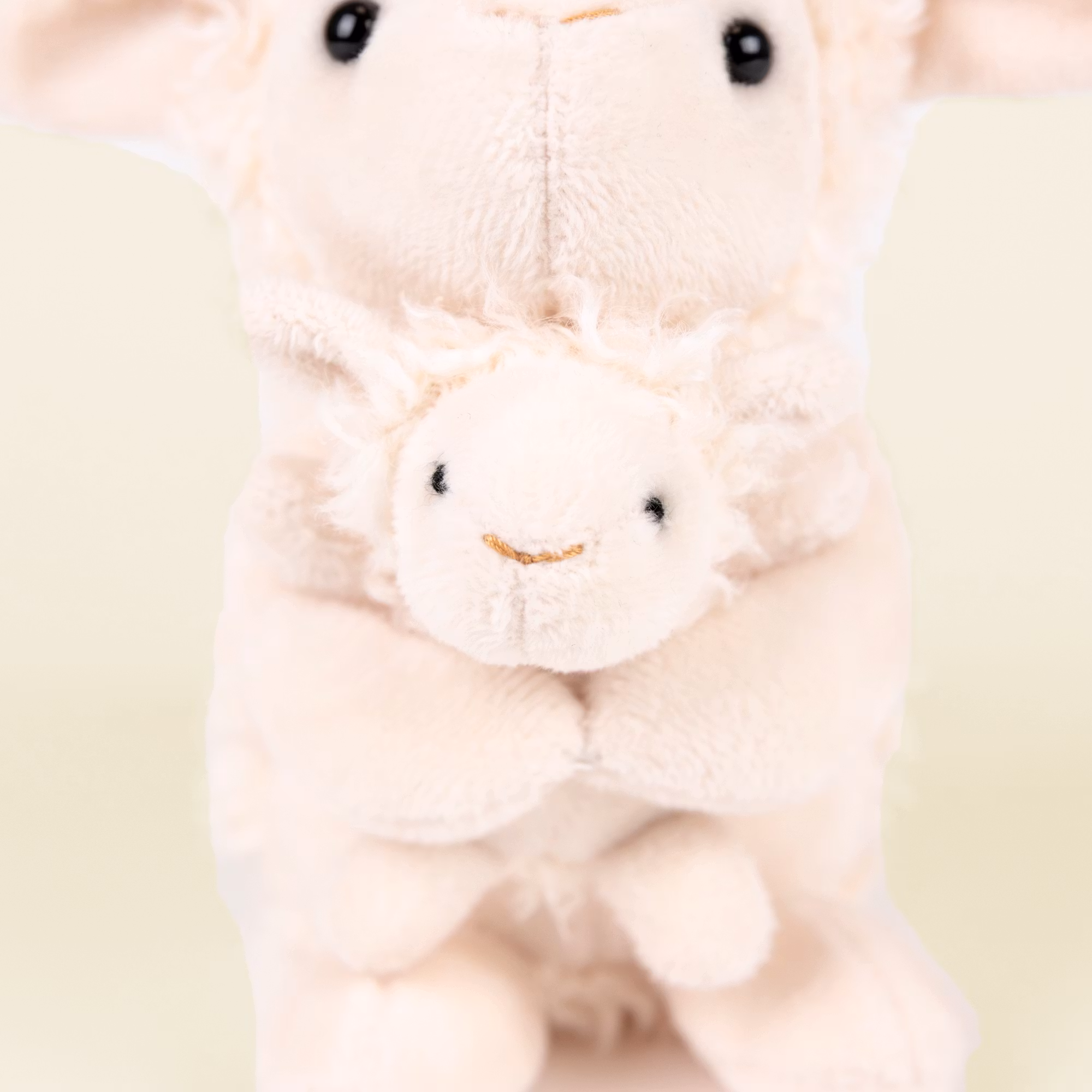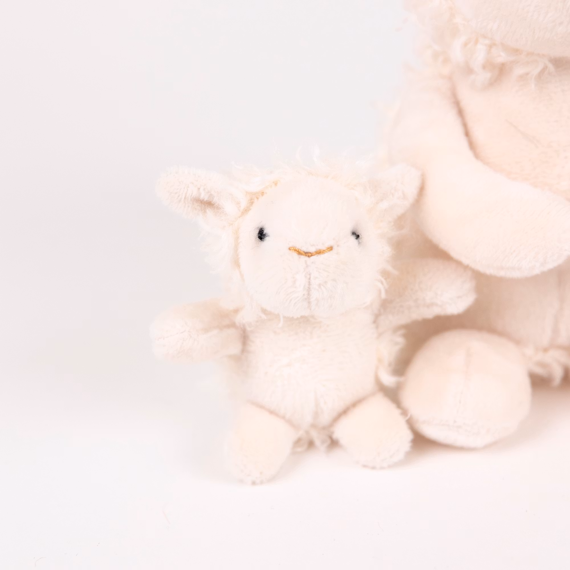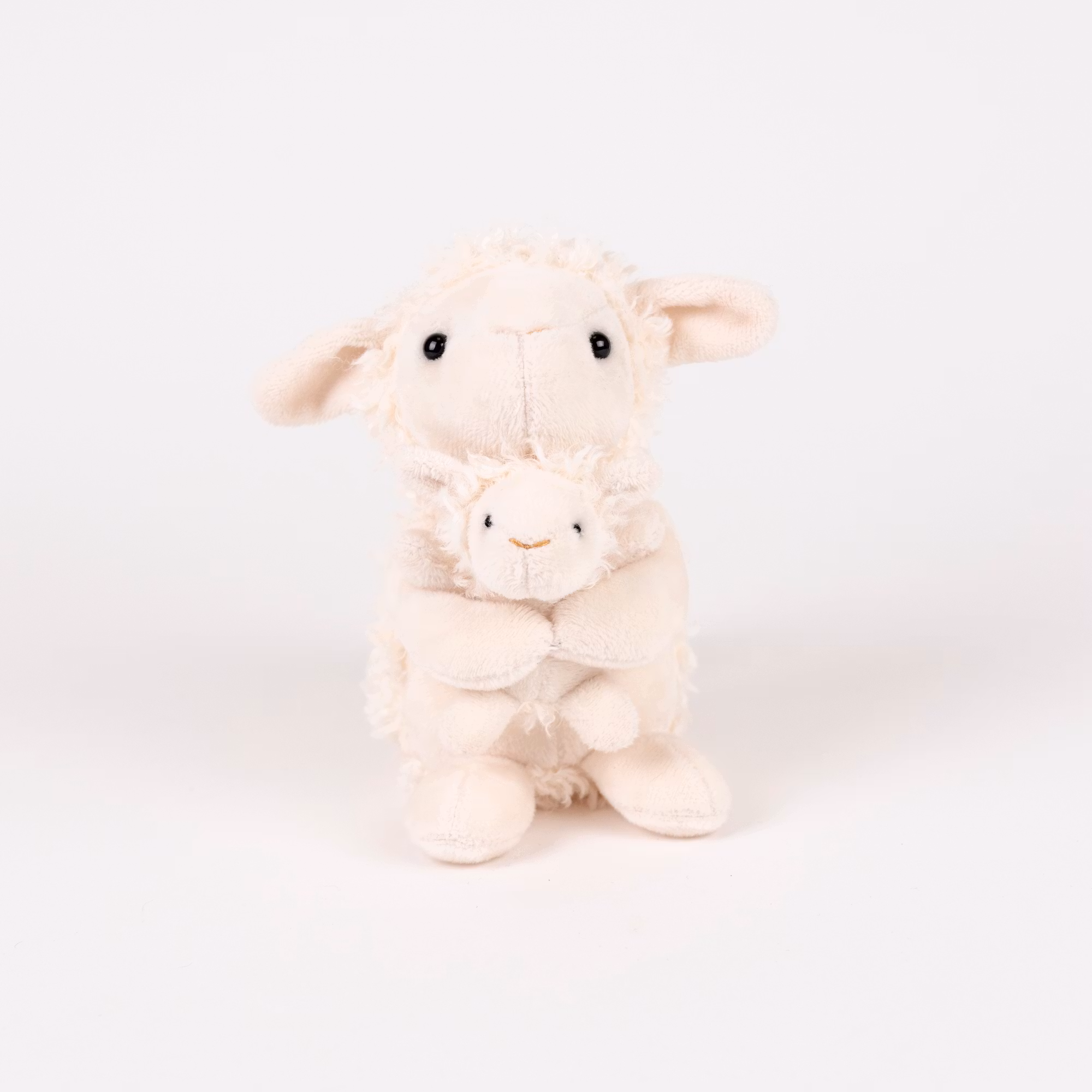 Möt detta milda lamm och hennes lilla unge, en öm duo gjord för att inspirera till värme och tillgivenhet. Med sina mjuka plyschiga texturer och kärleksfulla omfamningar inbjuder de till omhändertagande lek och tysta kramar. En tröstande följeslagare som hyllar närhet, omsorg och lugna stunder tillsammans.