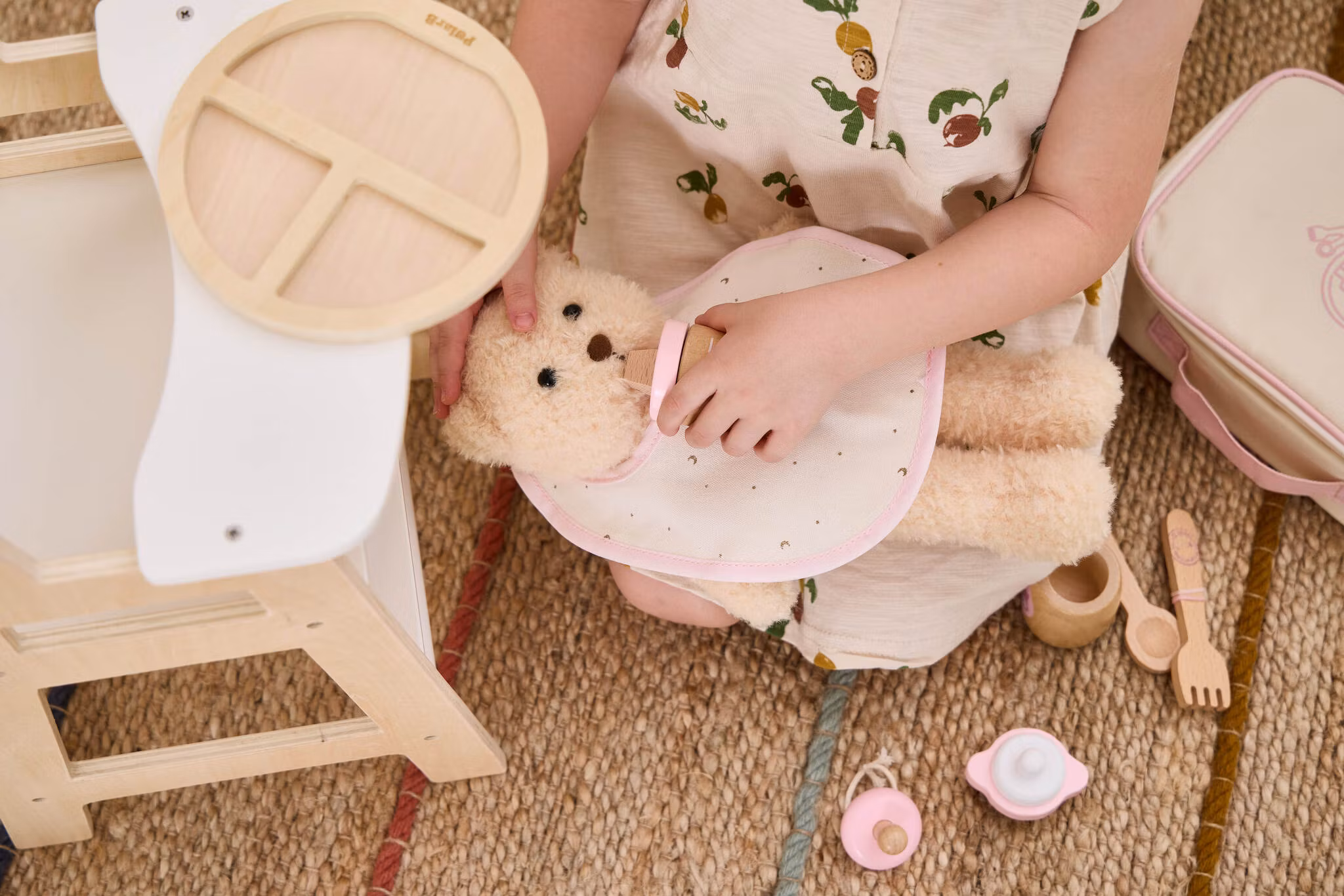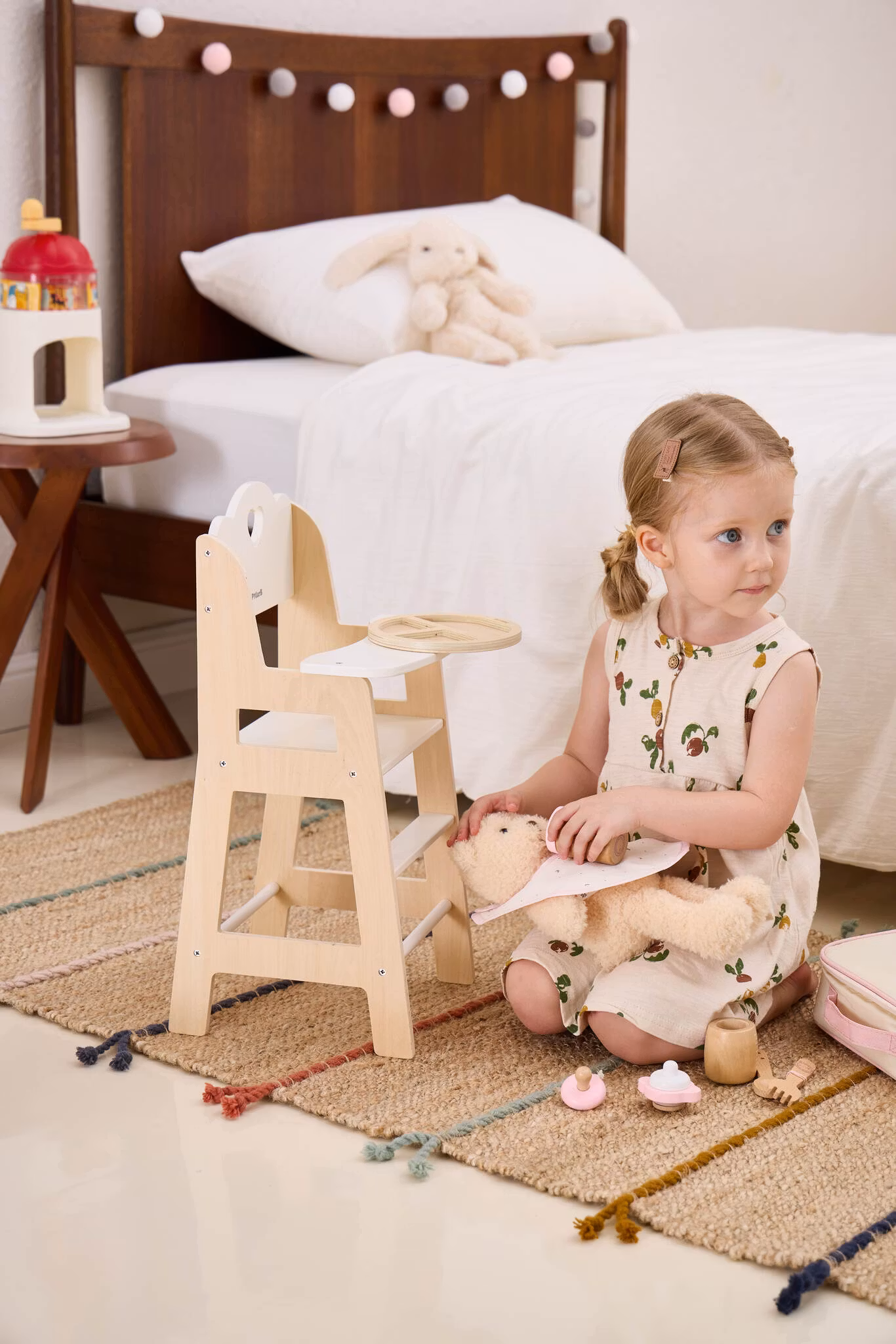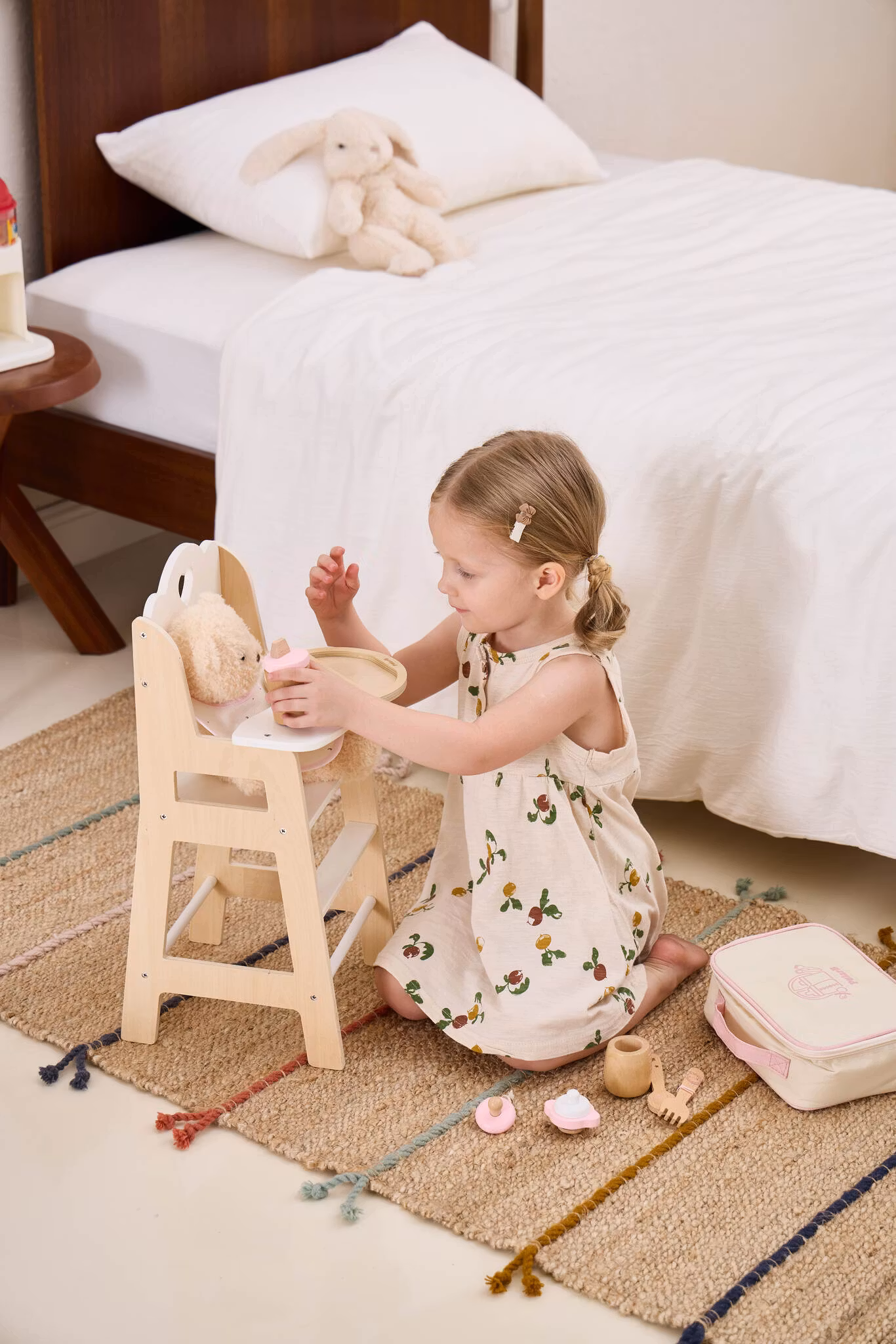 Ett jättefint lekset med flera olika delar för att ta hand om dockan till ett riktigt bra pris. Rejäla träleksaker som inte går sönder utan klarar tidens tand.T