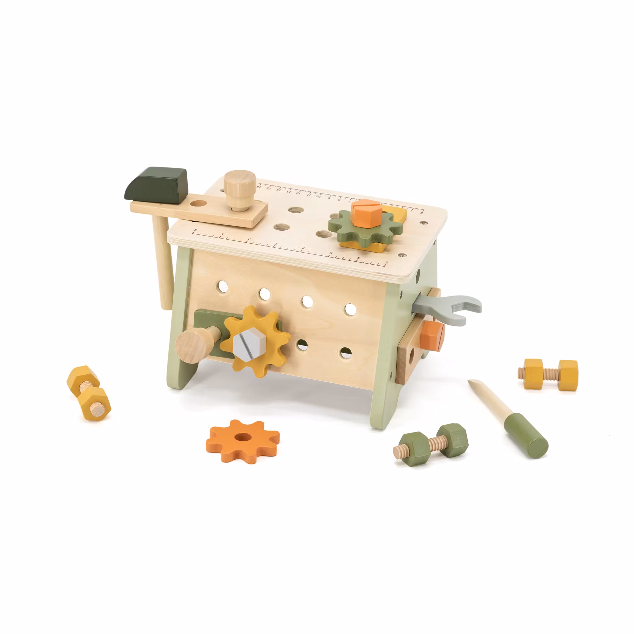 Kul och fin arbetsbänk i trä med många roliga funktioner. Innehåller 30 -delar.Storlek: 225 x 225 x 150 mmÅlder: 3år+