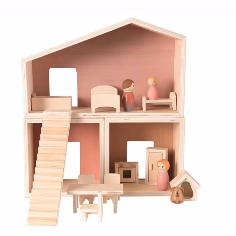 Det här fina dockhuset i trä är anpassningsbart och kan sättas ihop efter din fantasi. Huset levereras komplett med hela familjen och en komplett möbeluppsättning. Timmar av nöje garanteras. FSC-trä. 3+