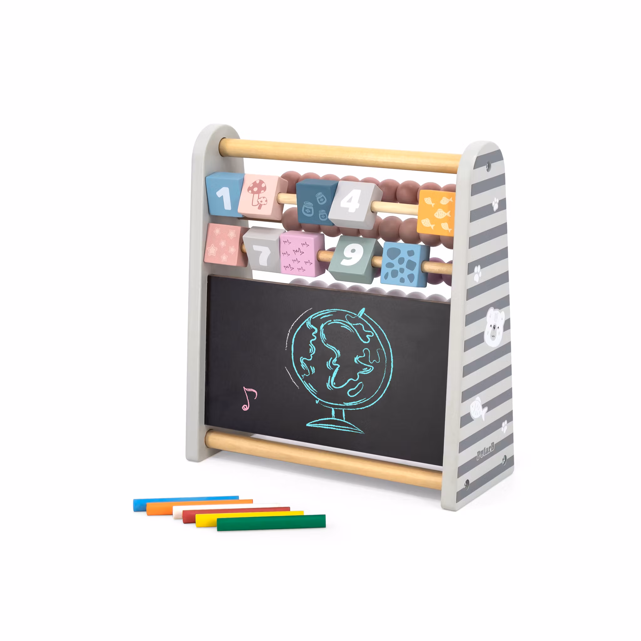 Ge ditt barn en rolig och pedagogisk leksak som inspirerar både till fantasi och matematiskt tänkande! Matematikinlärning med griffeltavla från VIGA är en 3-i-1 multifunktionell leksak som kombinerar en klassisk kulram, siffror och en griffeltavla med kritor. Barnen lär sig inte bara räkna med hjälp av de färgglada pärlorna och siffrorna utan de lär sig även att uttrycka sin kreativitet genom att rita och skriva på den praktiska griffeltavlan.