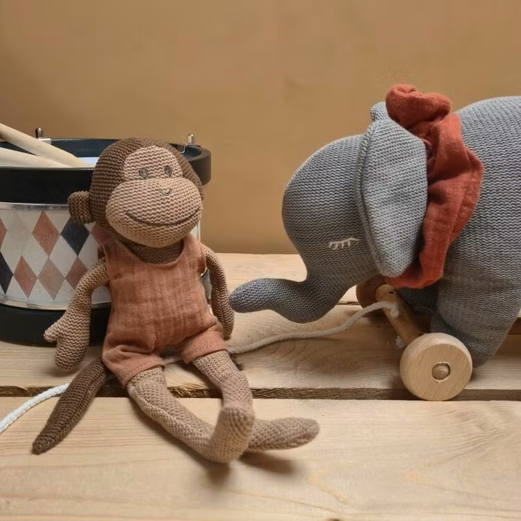 En kramgo stickad apa i bomull med linnekläder i härliga naturfärger från Egmont toys. Paulo är ett perfekt gosedjur för alla åldrar!