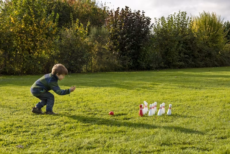 Klassiskt bowlingspel i trä från Egmont Toys. Ställ käglorna upprätta bredvid varandra och tävla om vem som får ner flest!