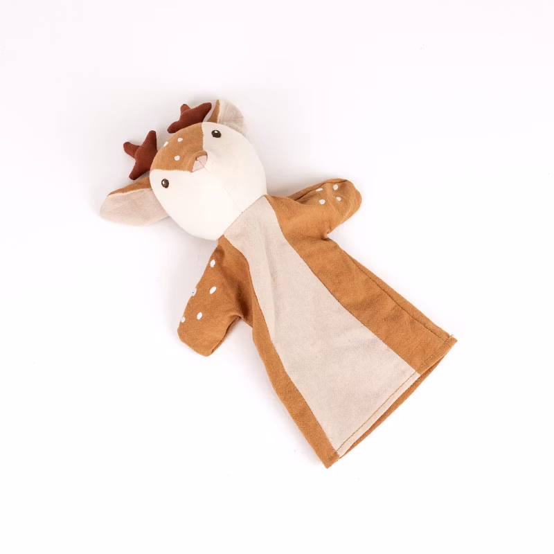 Här kommer den lilla rådjuret! Med söta prickar och mjuk bomull är denna charmiga handdocka redo att väcka ditt barns fantasi. Perfekt för historieberättande, d