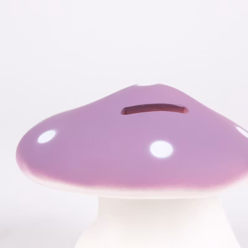 Denna söta lila svampformade sparbössa från Egmont toys blir en fin detalj i barnrummet.