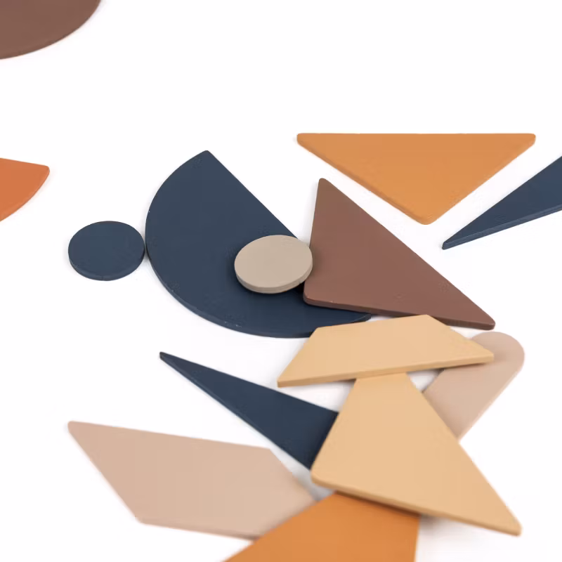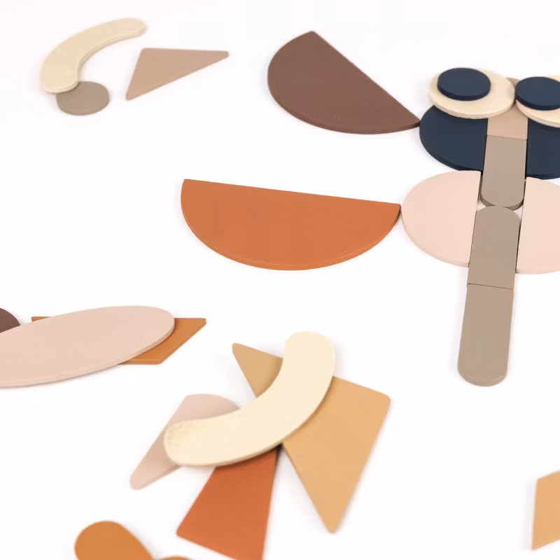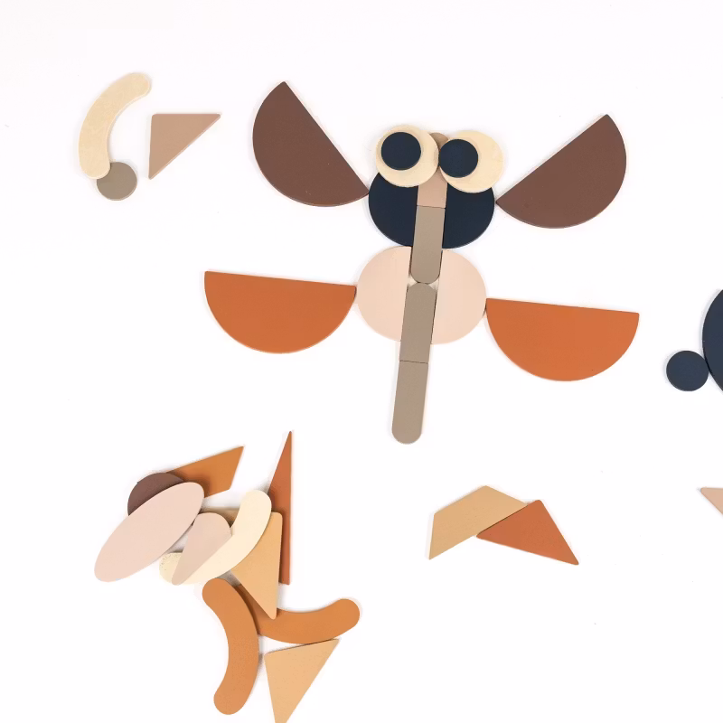 Utforska oändliga kombinationer med dessa vackert utformade träformer. Barn kan använda de mjuka färgerna för att skapa djur, ansikten, abstrakta mönster eller