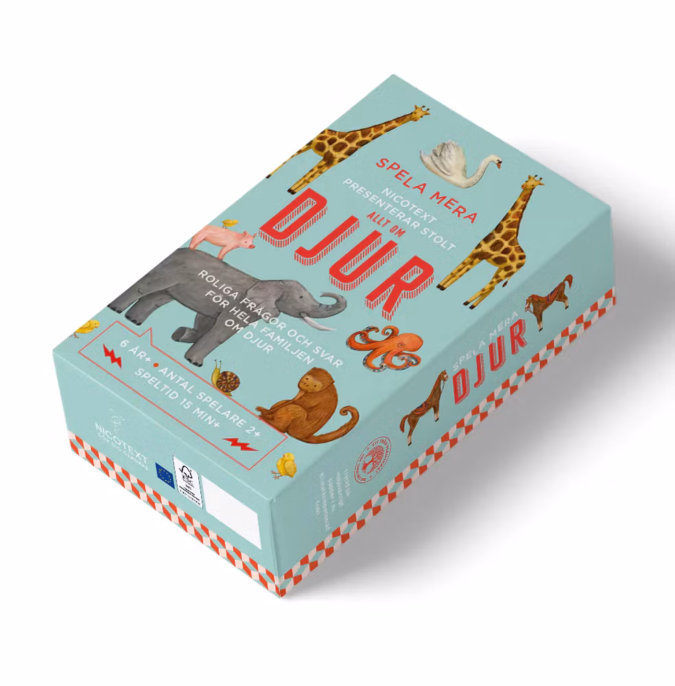 "'Jättebra, vi lär oss massor om djur!' Det var barnens (5 och 7 år gamla) spontana reaktion när vi avslutat första omgången av det här frågesportspelet. Vi kommer att spela många gånger, men också använda frågorna enskilt för att läsa upp ett par stycken då och då i syfte att lära barnen mer om djur på ett roligt och enkelt sätt."