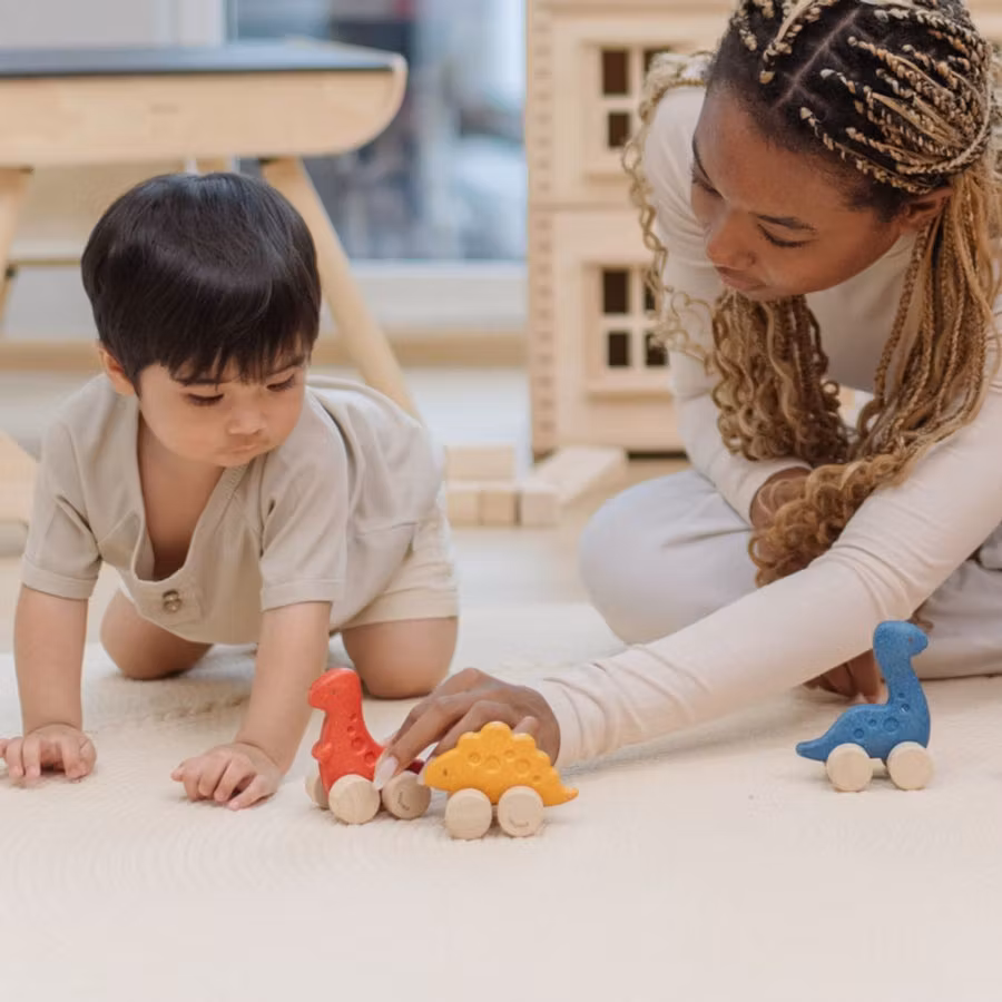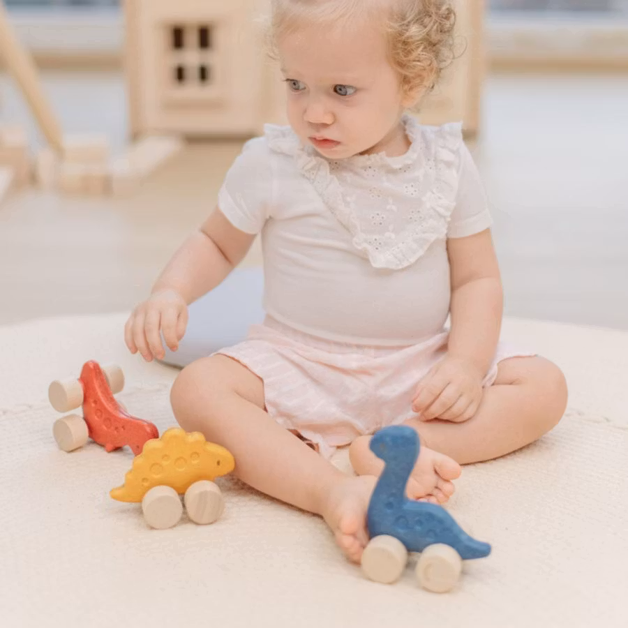 Denna gula Stegosaurus 'Stego' dinosauriebil utvecklar fin- och grovmotorik genom att gripa, knuffa och dra. Den förbättrar hand-öga-koordination, muskelstyrka och förståelse för orsak och verkan, samtidigt som den uppmuntrar till utforskning och fantasifull lek. Samla dem alla: Stego, Diplo och Rex.