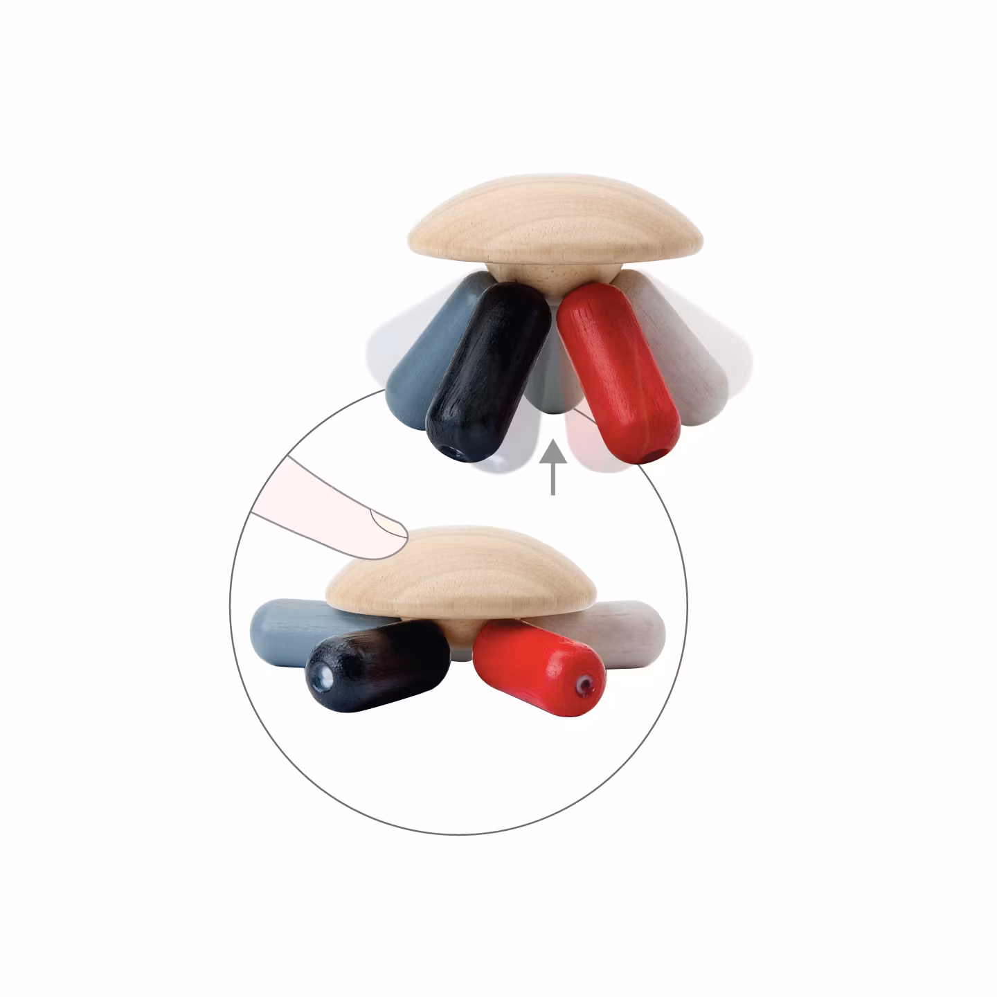 Flexi Jellyfish är designad för att passa i ett barns handflata. Designinspirationen kommer från maneter och hur de utan ansträngning glider genom vattnet. De roliga benen vickar och spretar när de kläms, knuffas, dras och trycks på. De små kommer att tycka om att manipulera benen när de utvecklar bilateral integation och koordinerade motoriska färdigheter. Bebisar lär sig genom att röra vid saker. Flexi Jellyfish kommer att ge dem något att hålla fast vid och ständigt manipulera för nöje och lärande. Färger med hög kontrast är särskilt fördelaktiga för små barn, eftersom de är lättare att se och hjälper till att utveckla visuellt fokus.