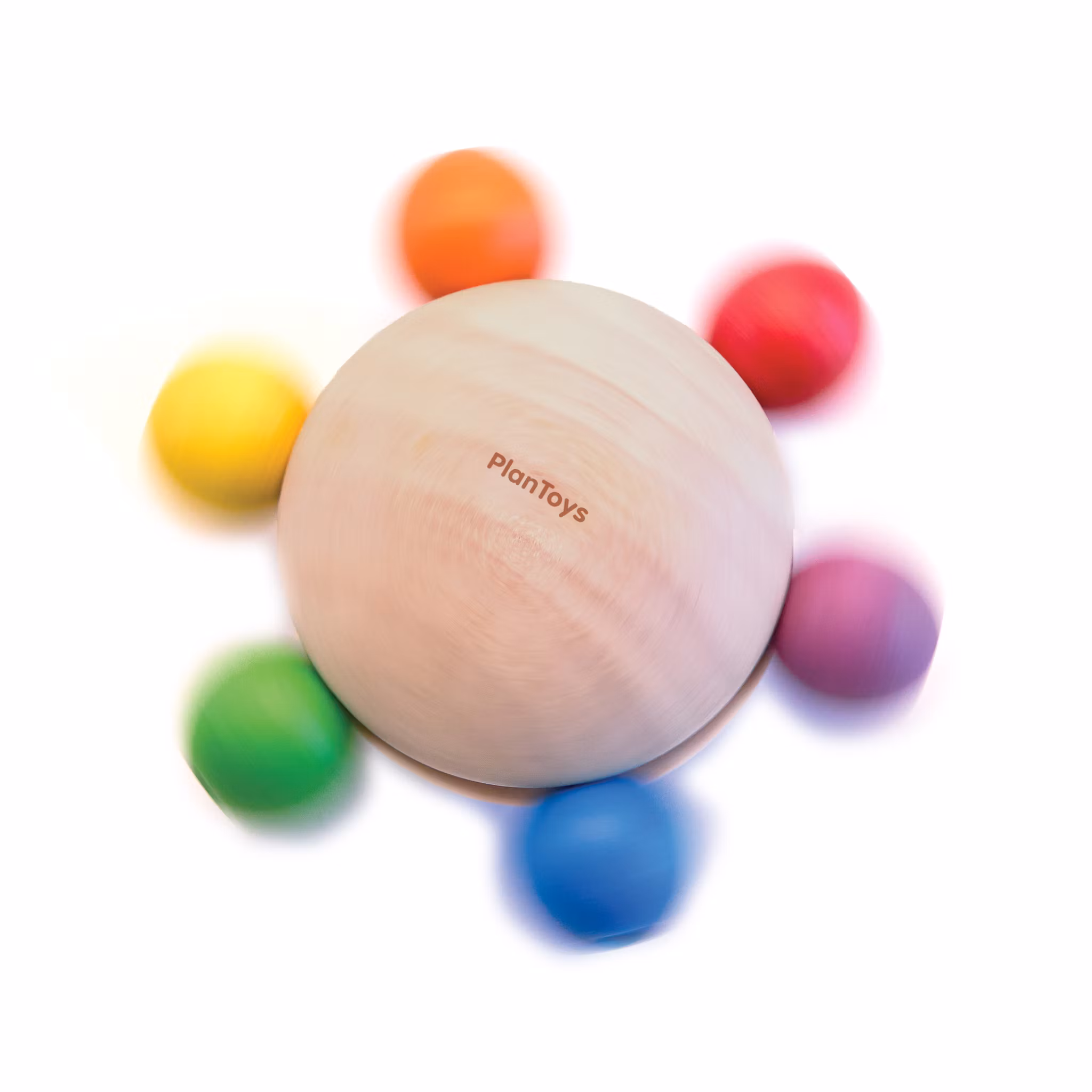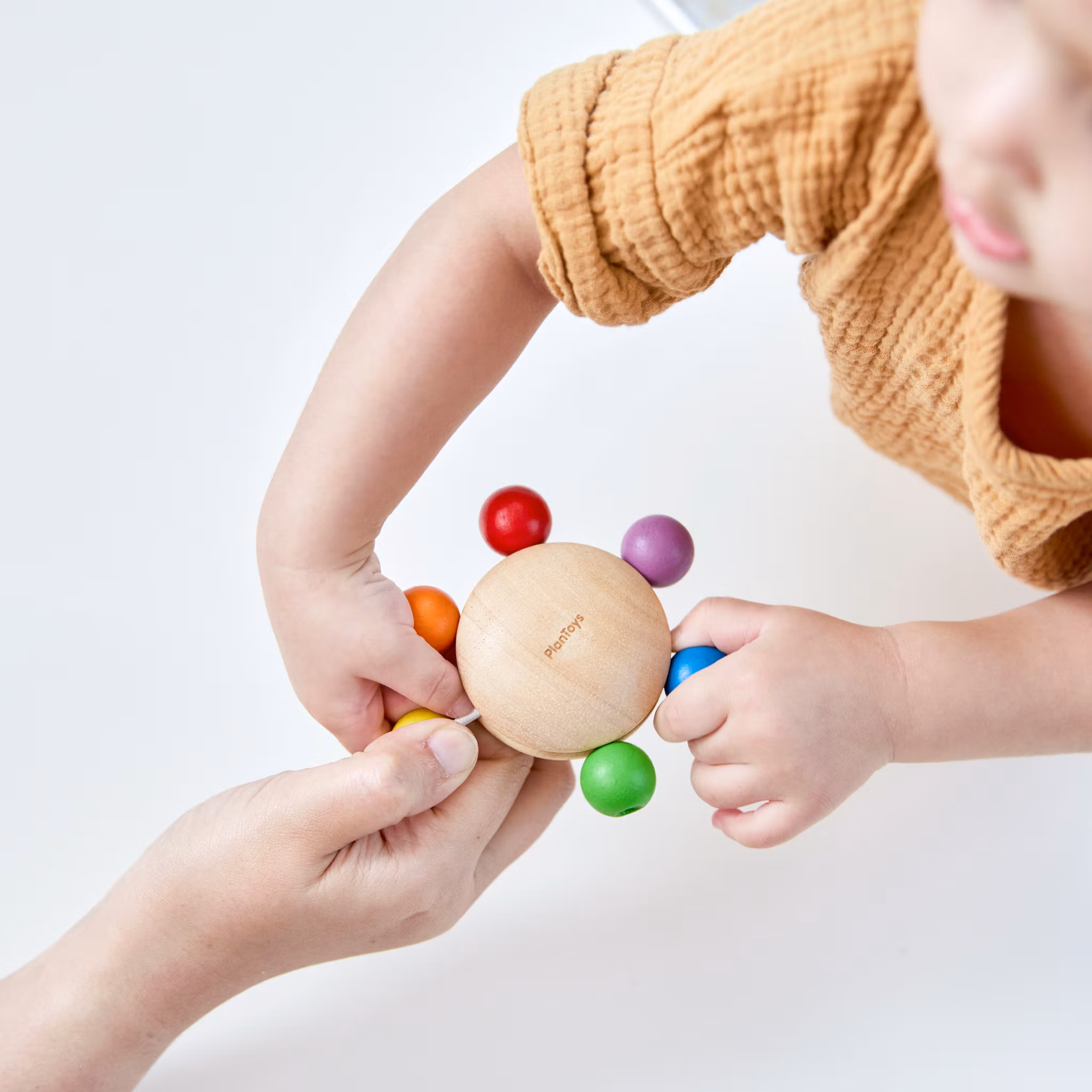 Den här leksaken är utformad för att öka finmotoriken när bebisar lär sig att greppa och dra i bollarna, vilket stärker hand- och fingermusklerna.