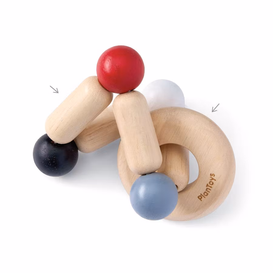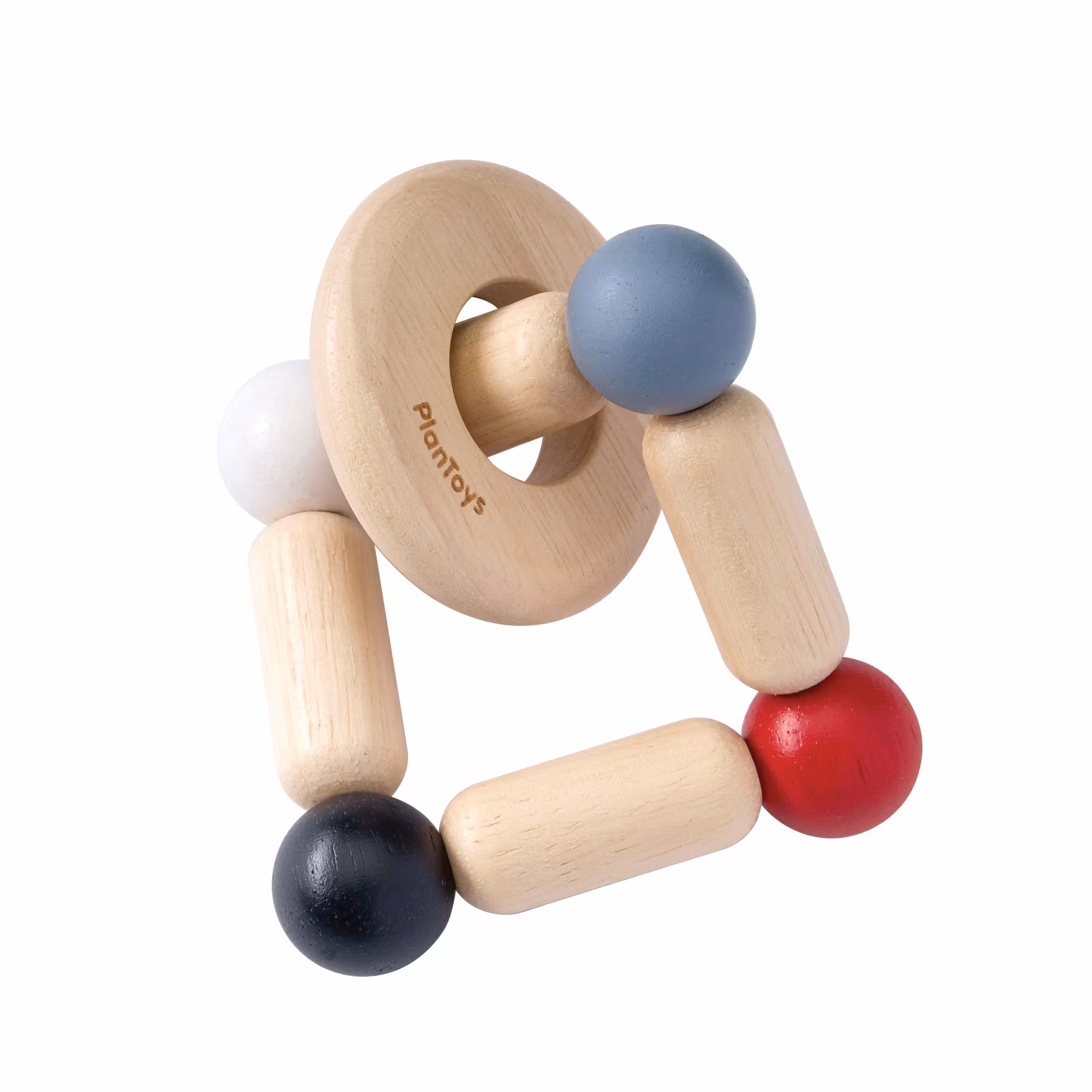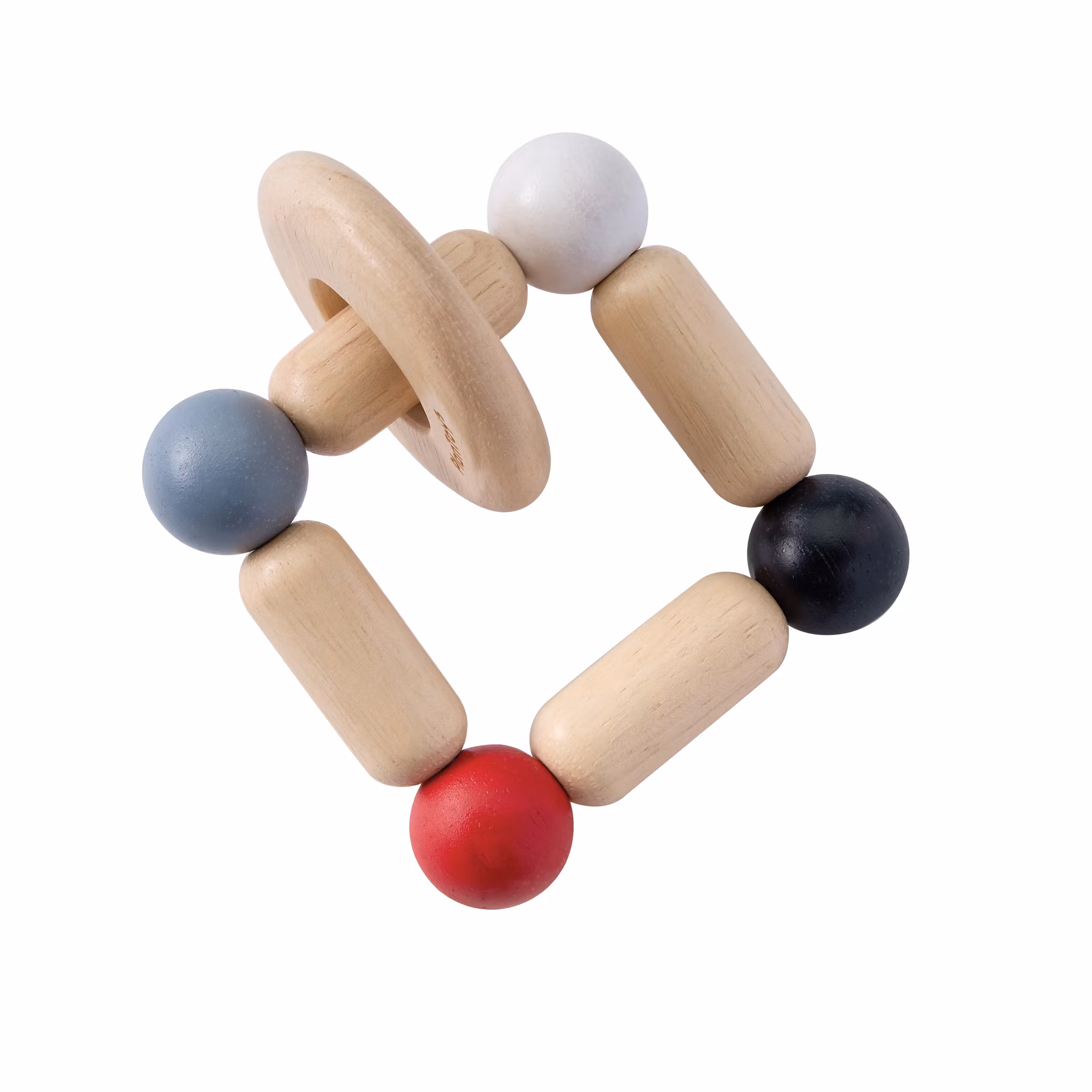 Det här är en flexibel, fyrkantig träleksak med färgglada röda, vita, svarta och gråa pärlor som glider och skramlar. När bäbisar greppar och klämmer på den böjbara ramen hjälper det till att utveckla finmotoriken och hand-öga-koordinationen. De skramlande ljuden stöder den auditiva utvecklingen, medan leksaken uppmuntrar taktil utforskning, bilateral koordination och kognitiv tillväxt genom inlärning av orsak och verkan, vilket ger fullständig sensorisk stimulering. Färger med hög kontrast är särskilt fördelaktiga för små barn, eftersom de är lättare att se och hjälper till att utveckla visuellt fokus.