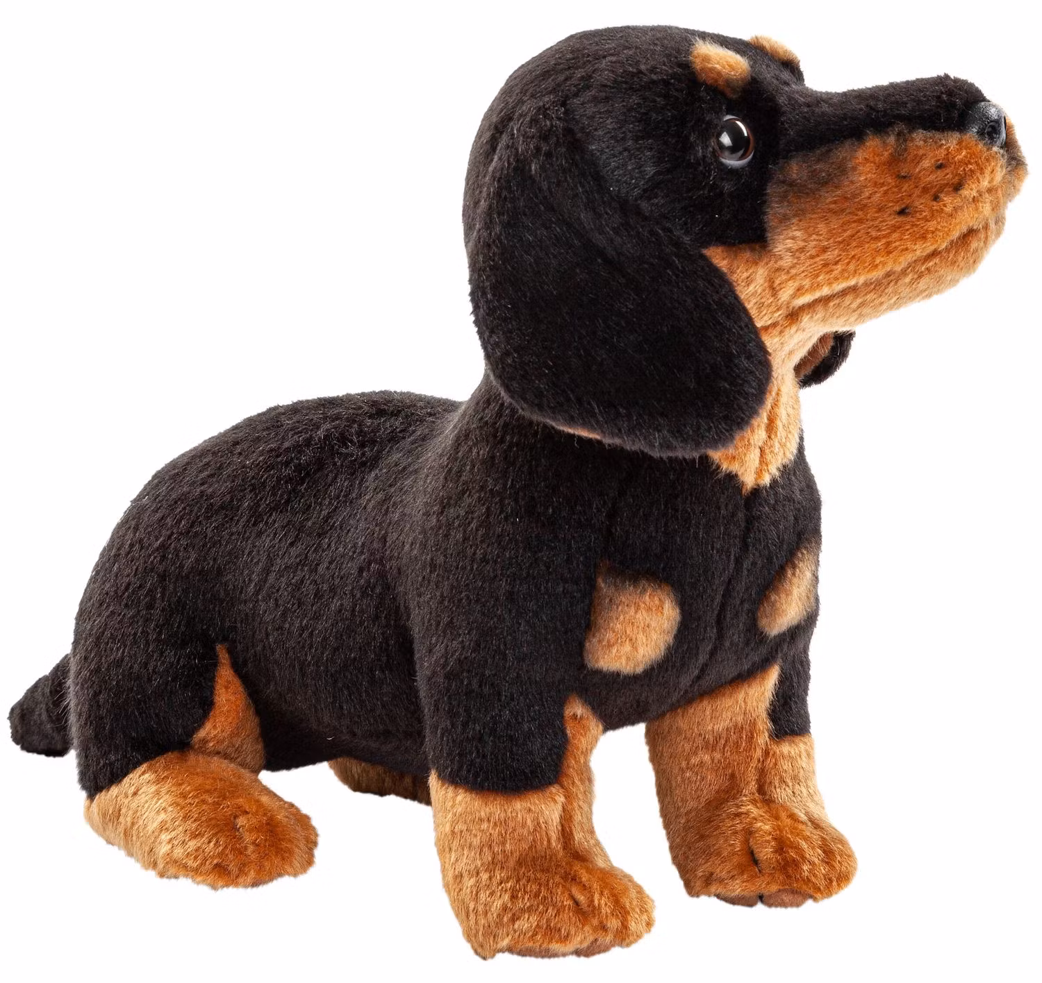 Taxen är 27cm lång, har koppel och är stoppad med 100% återvunnet material.