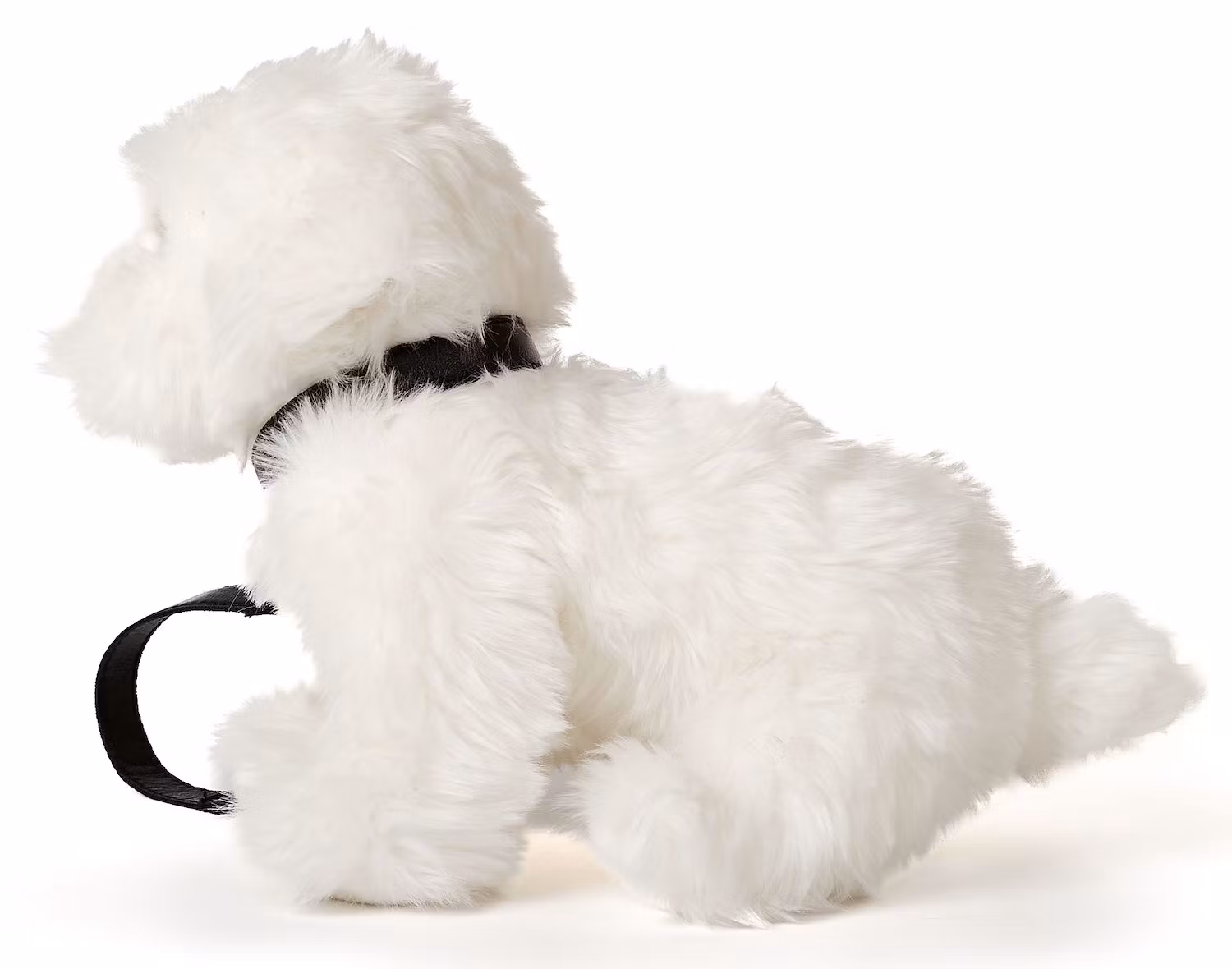 Malteser med koppel från Uni-toys. Maltesern har stoppning av 100% återvunnet material.